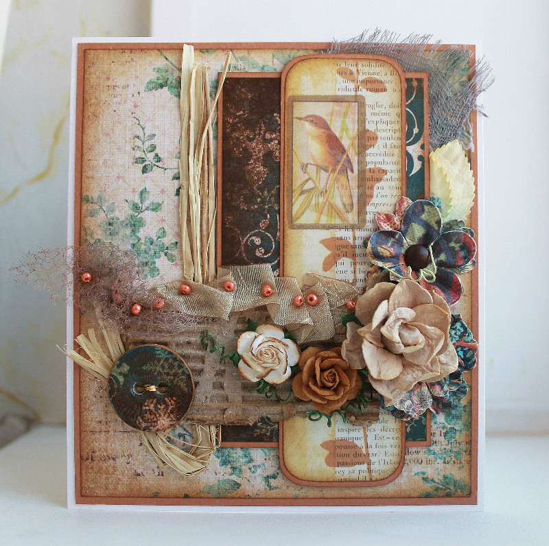 Необходимо сделать открытку в стилях винтажного кафе с использованием ОБЪЕМНЫХ цветов. То есть открытки с картинками цветочными, фоновая бумага с цветочным принтом, цветы вырезанные и подобного рода "шалости" :))) пардон, в этом задании приниматься не будут. Цветы могут быть как приобретенные в магазине, так и сделанными вручную.